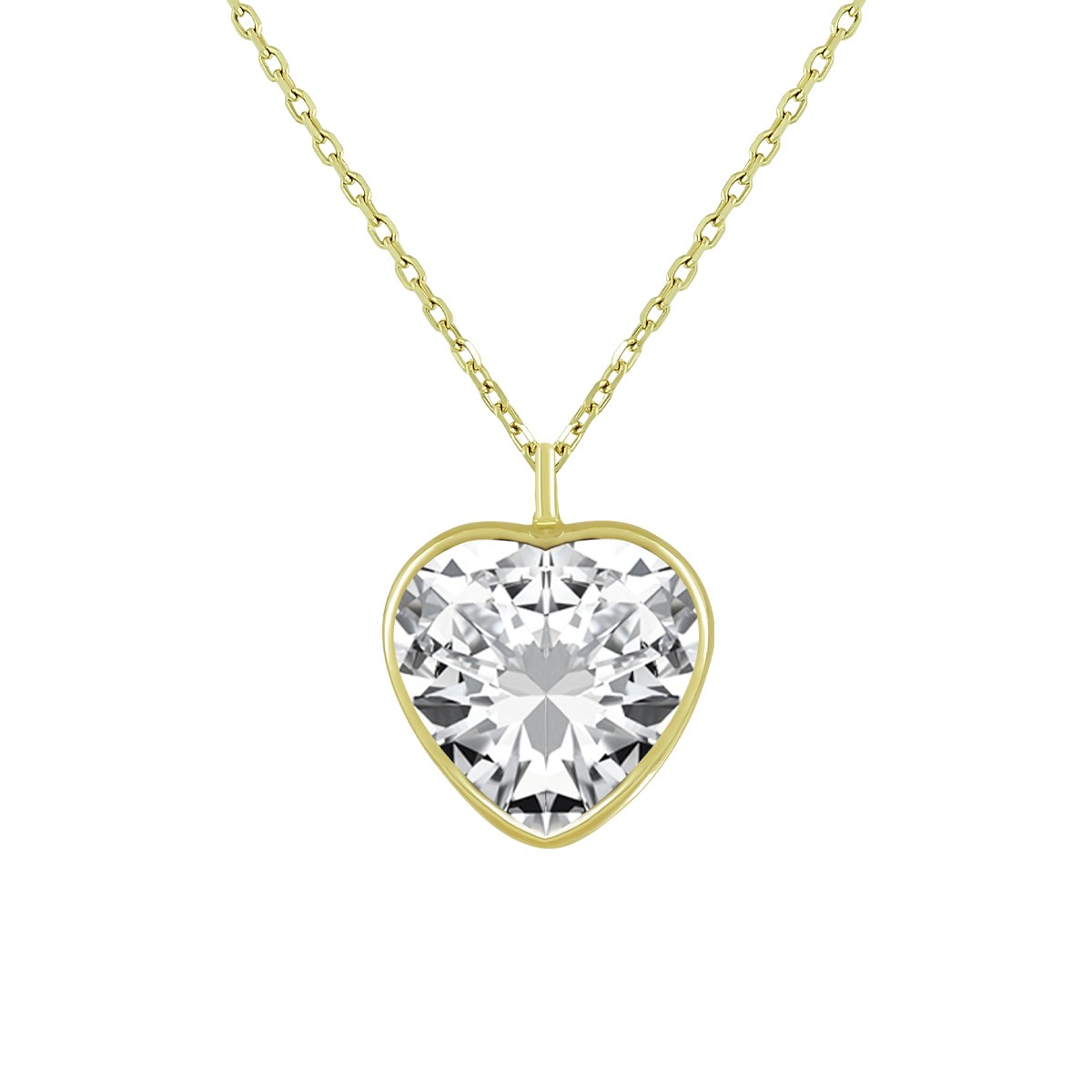 Gargantilla Oro Amarillo 18 kts. Motivo corazon de circonita bocelado 10 x 10 mm. Cadena forzada de 0.20 a 42-45 cm de largo con doble asa.